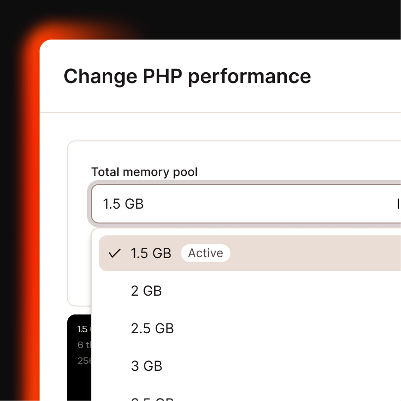 Enable the PHP Performance add-on before a launch or a busy period. Disable it when traffic settles. Pricing is prorated, so you only pay for the time it’s on.