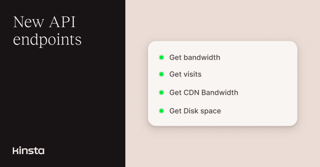 These new analytics endpoints give developers more visibility into their Kinsta-hosted environments directly from their automation and reporting workflows.
