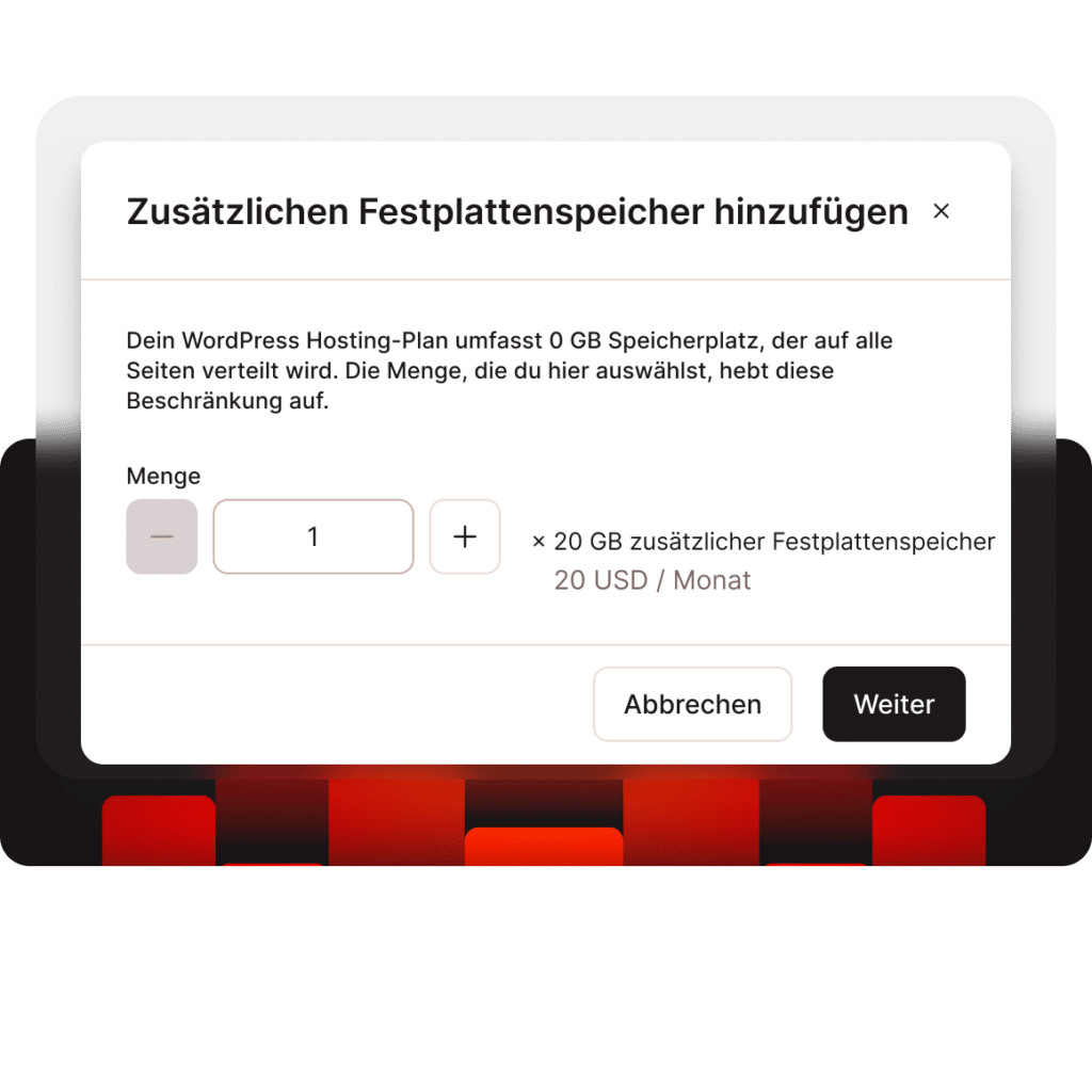 Bei großen Seiten mit vielen Dateien oder Bildern erhöht unser monatliches Add-on den Speicherplatz deines Plans.