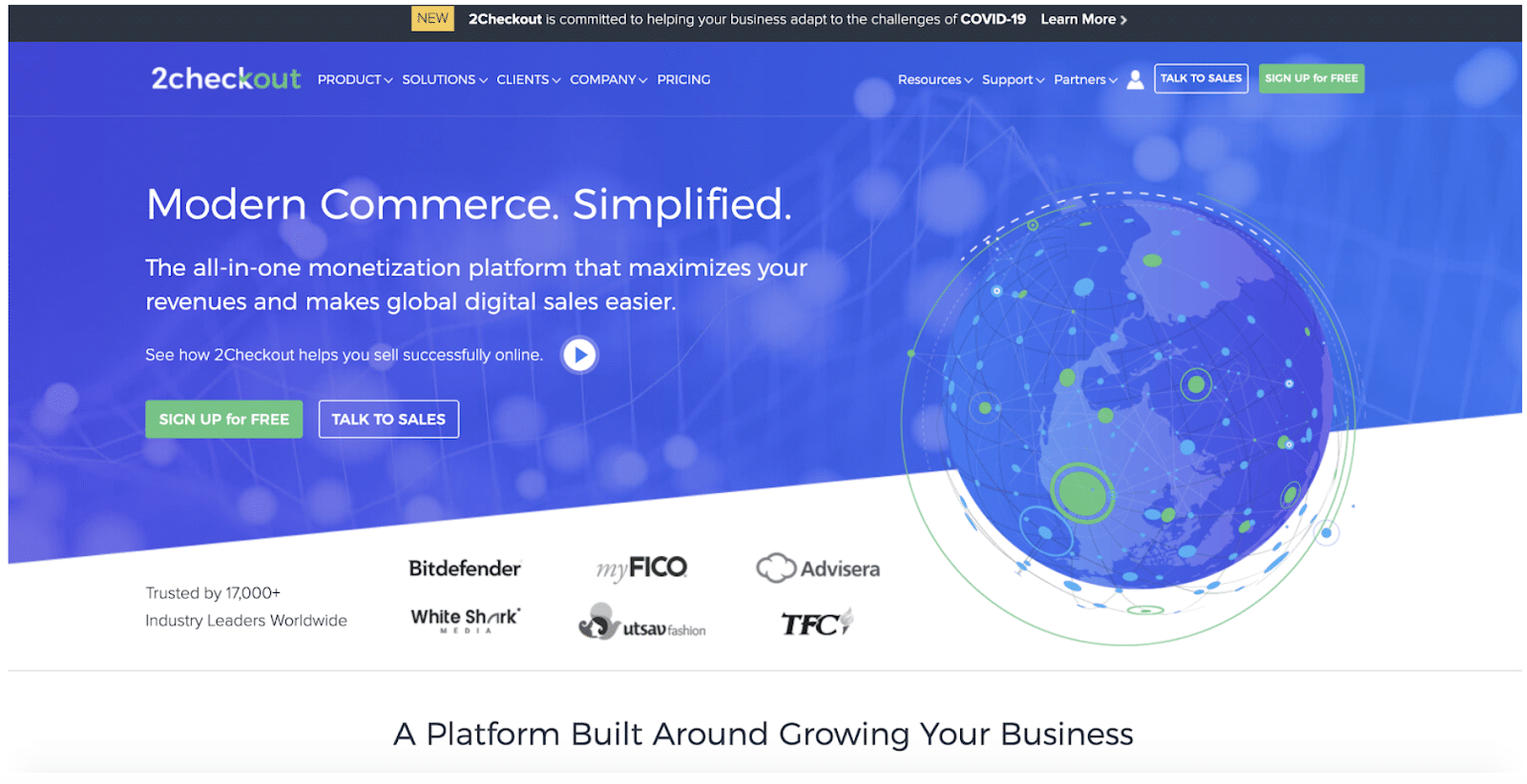2Checkout er en “monetization platform”, der gør det nemmere at sende og acceptere betalinger fra kunder og leverandører over hele verden.