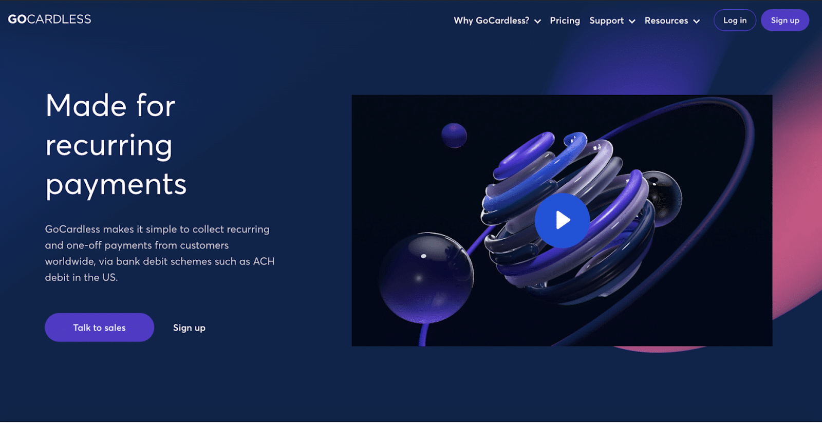 GoCardless forestiller sig livet uden behov for et håndgribeligt kreditkort med sin betalingsprocessor foretaget til tilbagevendende og engangsbetalinger. GoCardless er fantastisk til tilbagevendende transaktioner, der debiteres direkte fra dine konti.