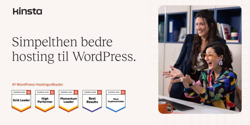 Kåret som #1 WordPress Hosting Provider på G2: Hastighed, sikkerhed og support i virksomhedsklassen. Se, hvad der adskiller os, med din første måne…