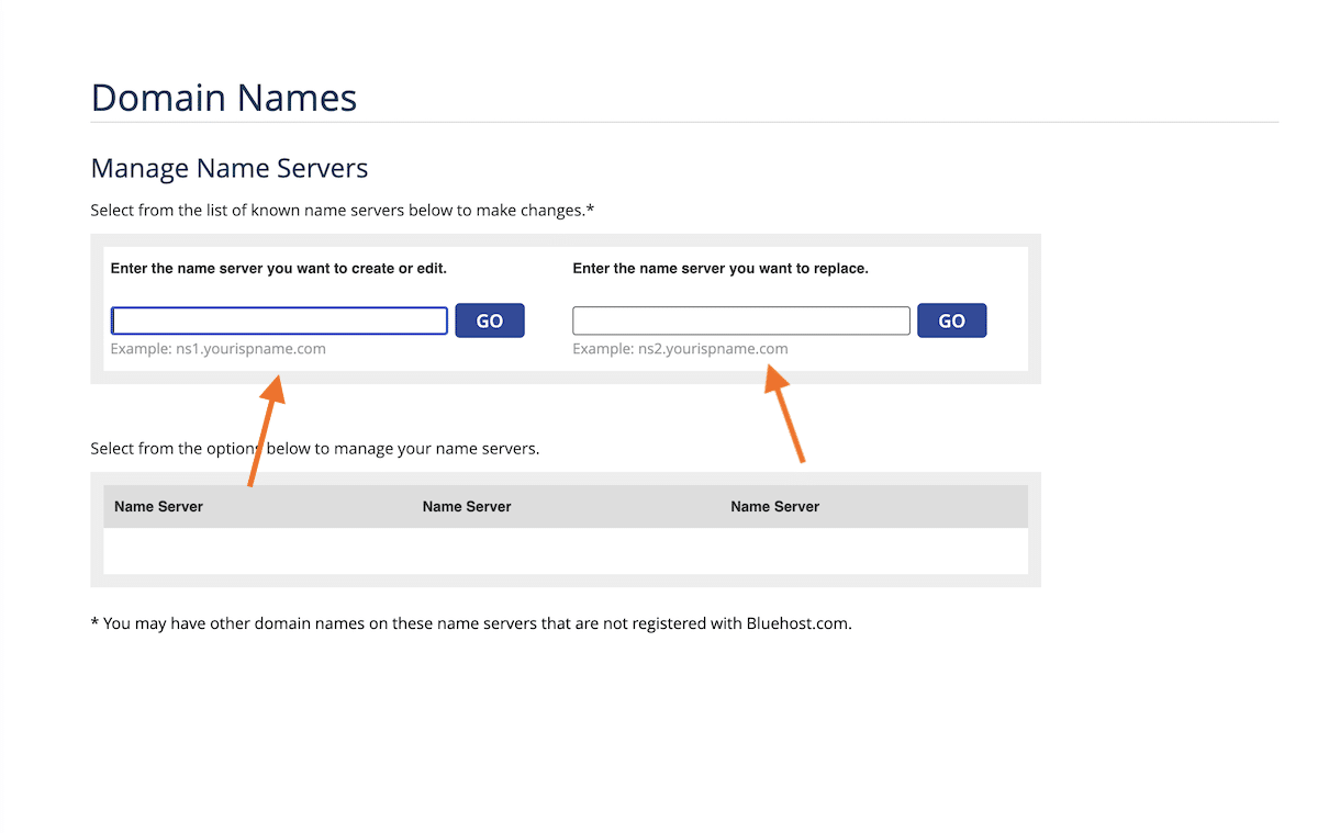 Típicamente, los registradores de dominios no proveen a los clientes un servicio DNS premium como el DNS de Kinsta. Por esta razón, recomendamos cambiar los servidores de nombre a Kinsta DNS si tu dominio está registrado en Bluehost.