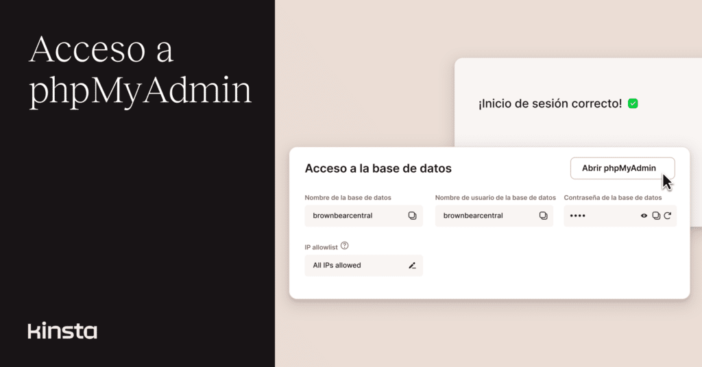 Los clientes de Kinsta que utilizan phpMyAdmin para gestionar sus bases de datos de WordPress ahora pueden iniciar sesión en la herramienta con un solo clic en el panel de MyKinsta.