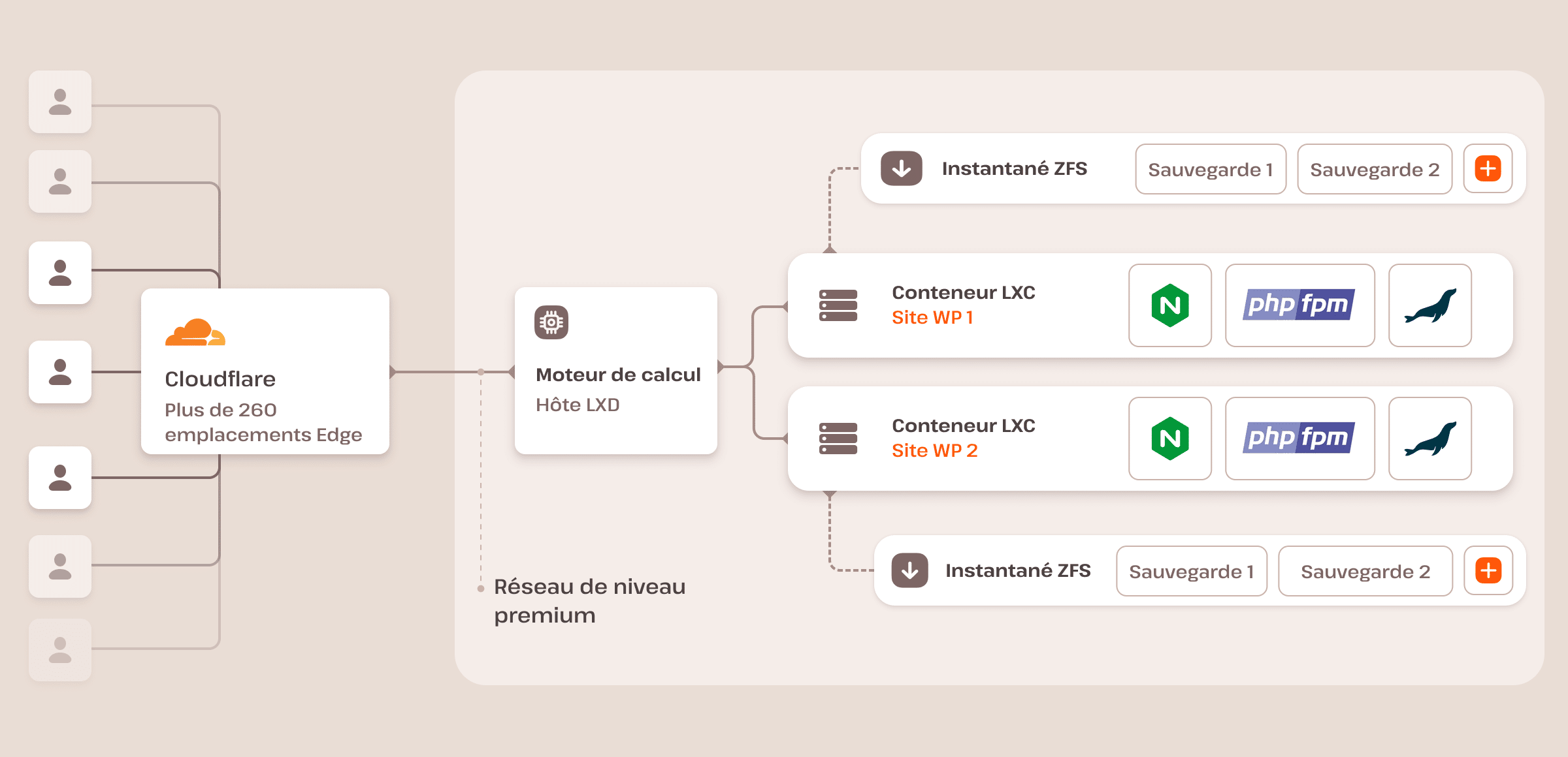 Il est indéniable que les centres de données consomment d’énormes quantités d’électricité. Cependant, nos centres de données consomment en moyenne 50 % d’énergie en moins que les autres solutions. En collaborant avec une entreprise soucieuse de son empreinte carbone, nous réduisons l’impact environnemental de nos sites web.