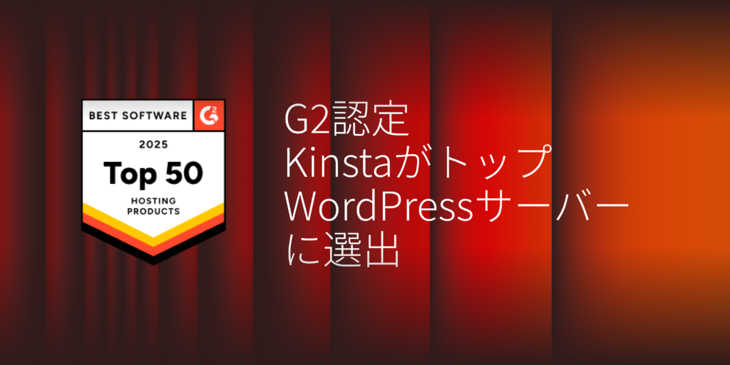 G2の2025 Best Software Awardsは、18万以上の製品とサービスを対象に、280万件のユーザーレビューをもとに選出されています。KinstaのWordPress専用マネージドクラウドサーバーが最高のWordPressサーバーに選ばれたことを大変嬉しく思います。