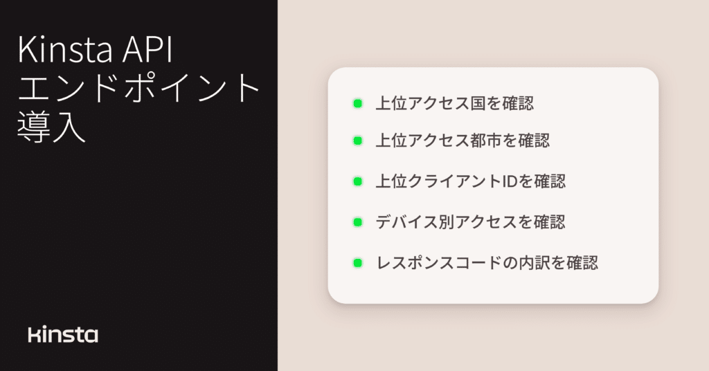 今回導入されたエンドポイントは、Kinsta APIですでに利用可能な分析機能をさらに強化するものであり、トラフィックソースやリクエストパターンをより詳細に把握できるようになります。