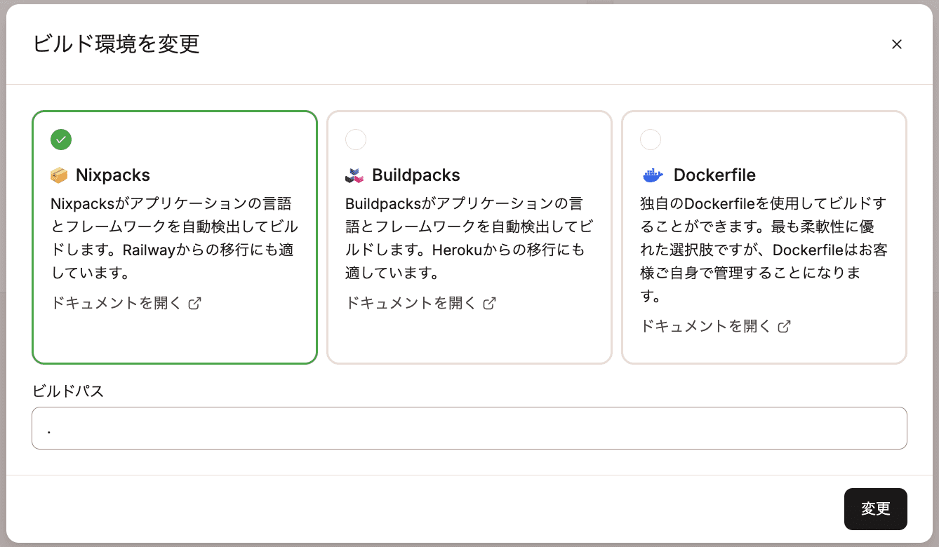 Nixpacksを使用して、リポジトリに基づいてアプリケーション用のコンテナを作成します。