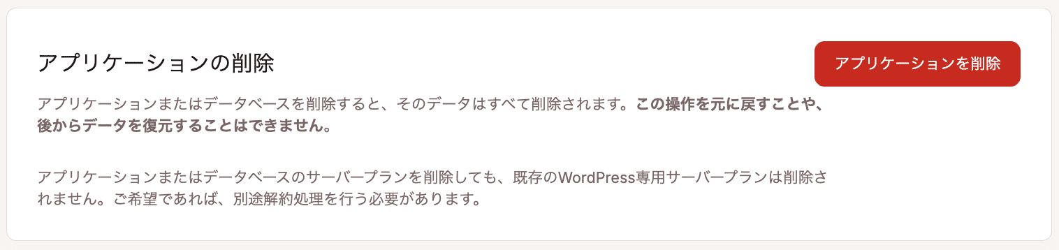 アプリケーションを削除すると、以下が完全に削除されますのでご注意ください。