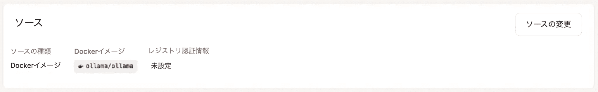 これらの設定を変更するには、「ソースを変更」をクリックします。レジストリ認証情報を変更する場合は、「デプロイメント」画面からアプリケーションを手動で再デプロイしてください。