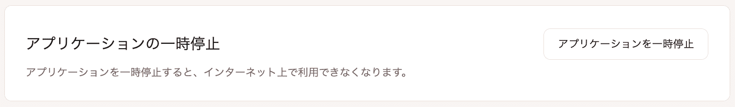 「アプリケーションを一時停止」をクリックし、ポップアップで再度「アプリケーションを一時停止」をクリックして確定します。