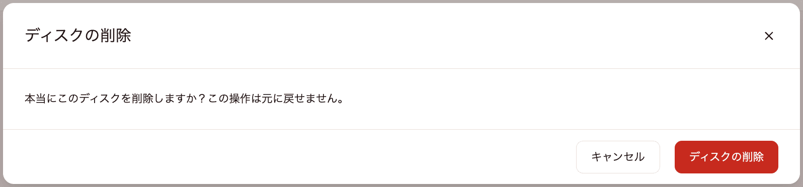 確認の上、「ディスクの削除」をクリックして完了です。