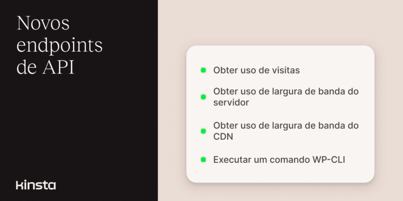 Acompanhe o uso mensal e execute comandos WP-CLI com a API da Kinsta
