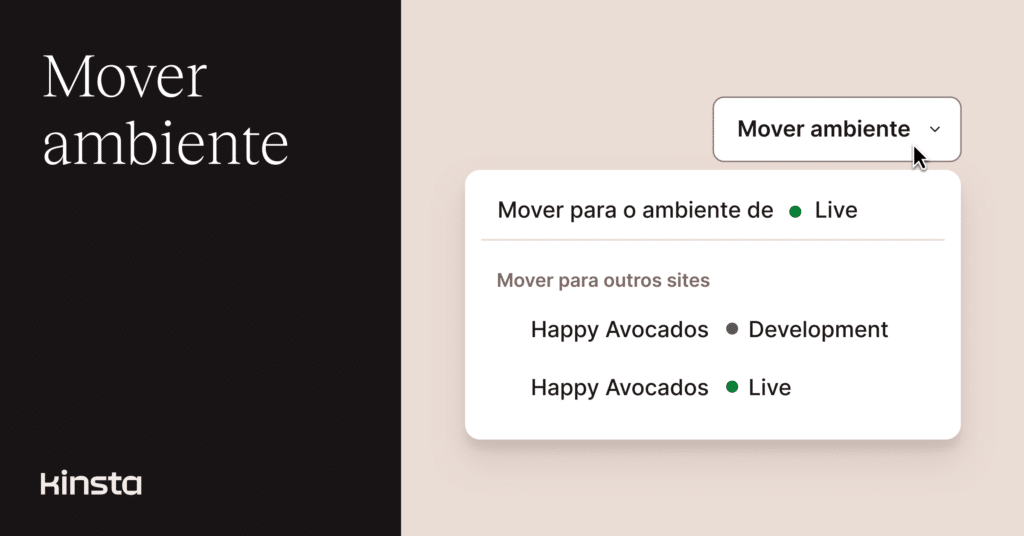 Outra melhoria na funcionalidade Mover Ambiente do painel MyKinsta tornou possível implantar ambientes entre sites WordPress distintos.