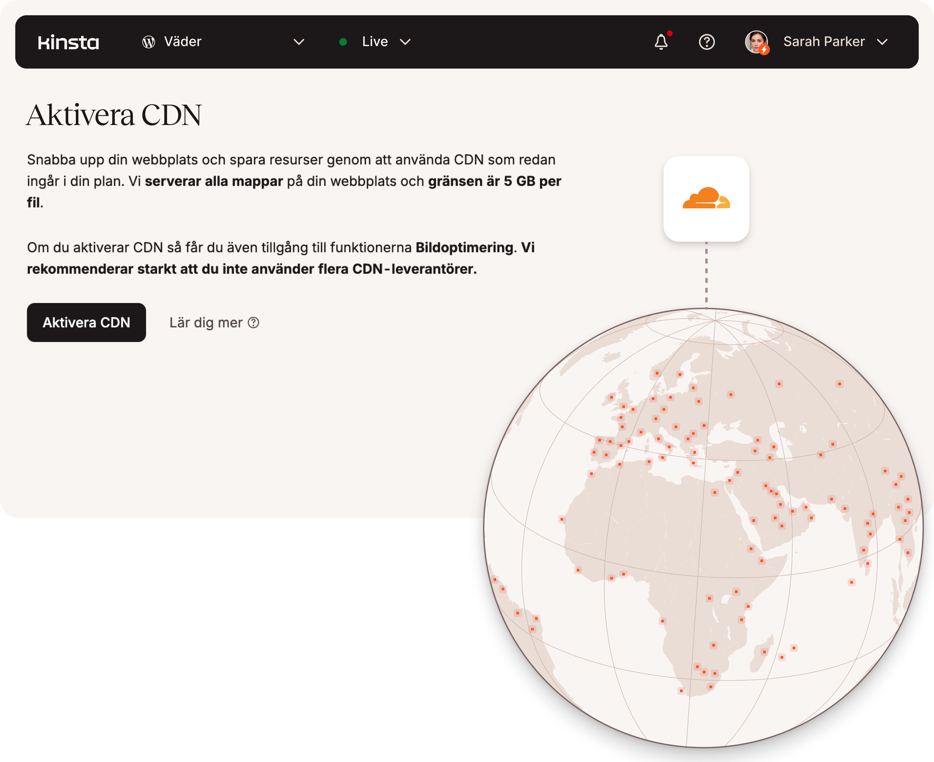 - Integrerat CDN (Cloudflare) med WAF och Enterprise DDoS-skydd