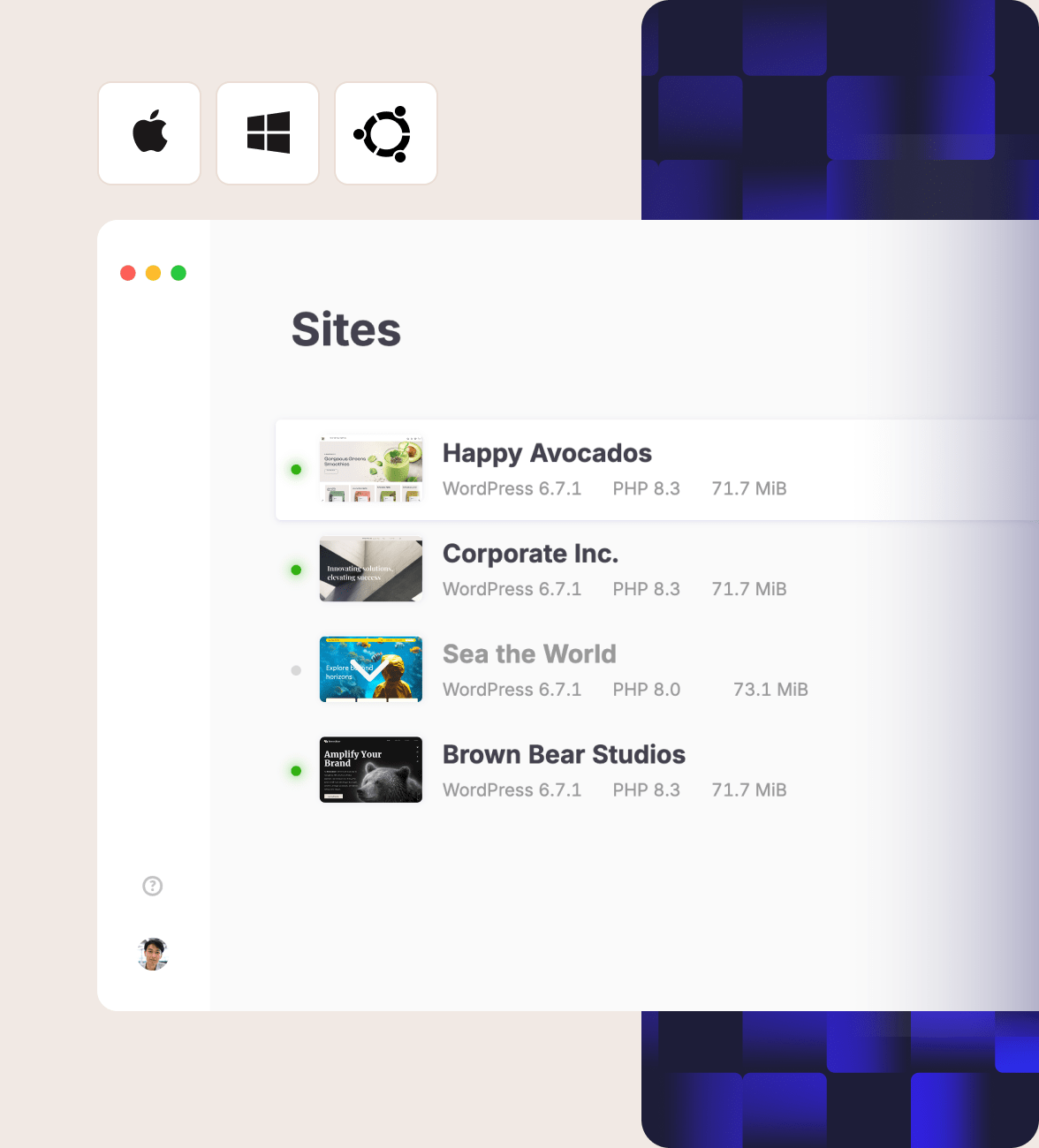 Manage your WordPress sites, databases, and even your applications in one place.