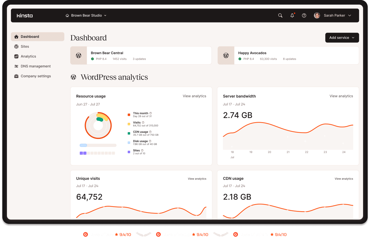 Our MyKinsta dashboard is the best in the biz. Administration tasks are delightfully simple.